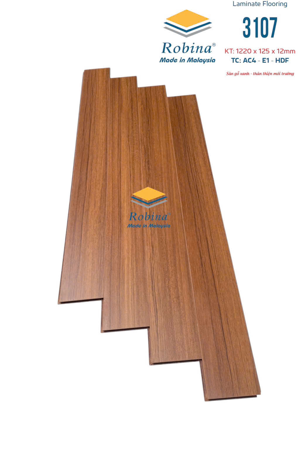 Sàn gỗ Robina 12mm bản nhỏ – 3107 là thương hiệu nổi tiếng đến từ Malaysia, được sản xuất trên dây chuyền công nghệ Đức với quy trình kiểm soát chất lượng nghiêm ngặt.